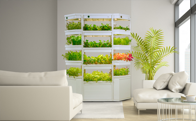 智慧家庭農場系列適用于客廳、廚房、臥室、陽臺、書房等不同家居環境,鮮綠茂盛的葉子伸展其間,伴隨著潺潺的流水聲,仿佛置身于森林般的自然氧吧。